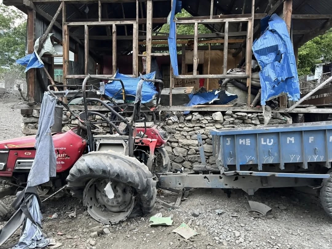 “The shelling was intense, forcing many families to flee to safer locations, ” local told GNS, adding, ” Among the destroyed houses are those of Talib Hussain and Dr Bashir Ahmad Chakoo at Salamabad,”.