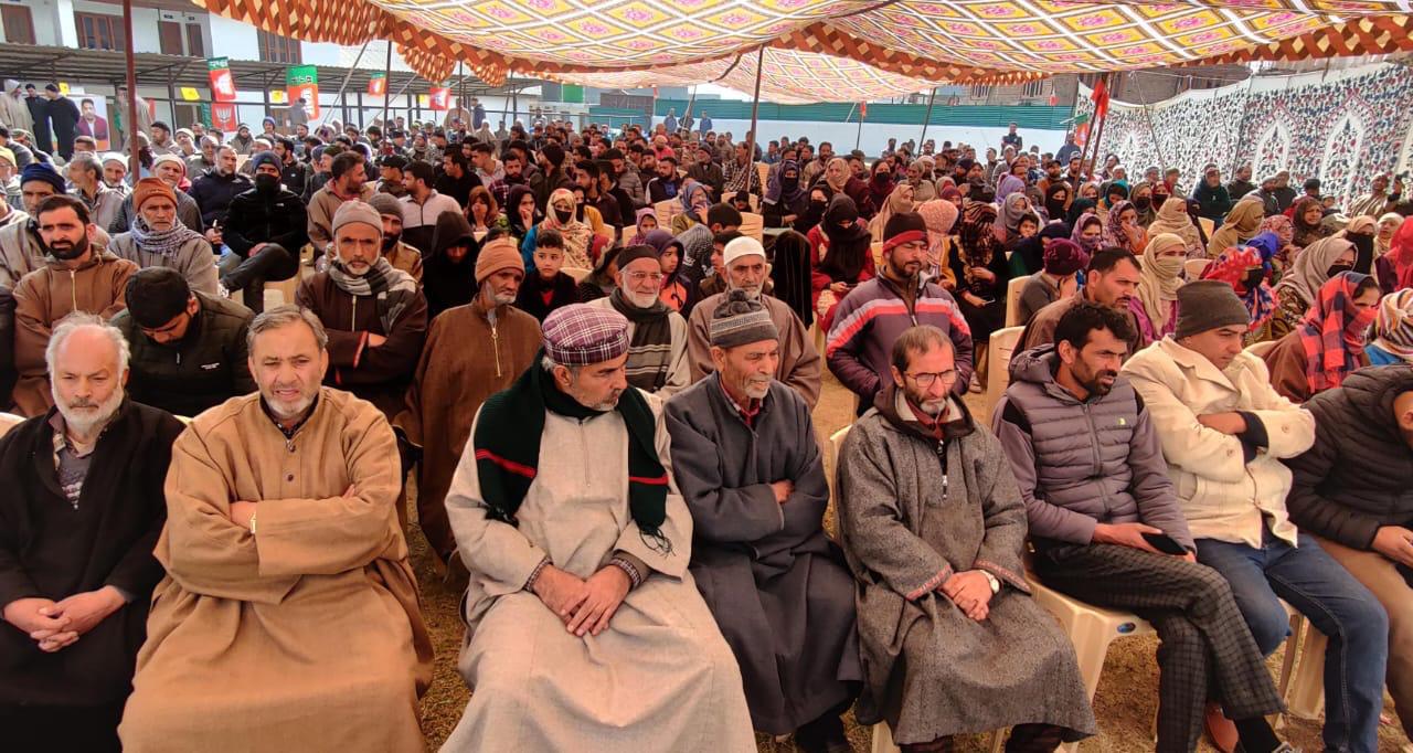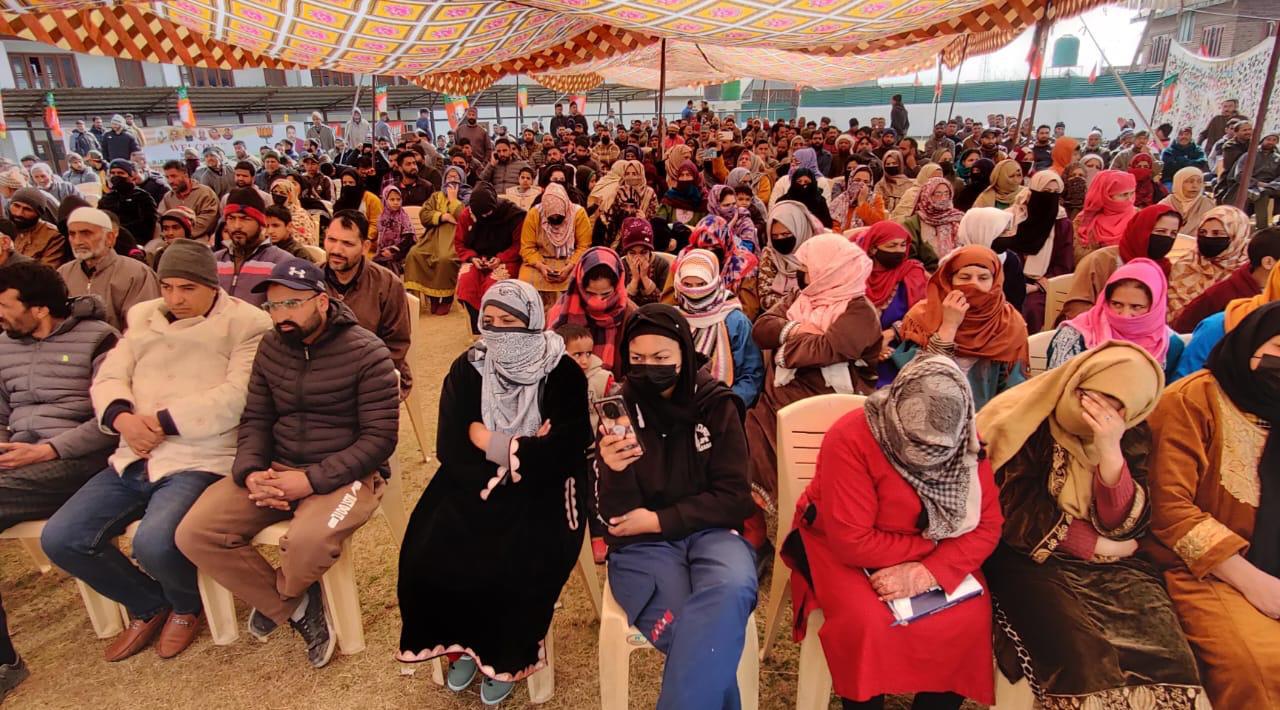 Speaking on the occasion, DDC member for Khonmoh, Er Aijaz Hussain said that today’s gathering is proof that people have decided to be part of BJP and to strengthen it further as the party believes in clean politics and doesn’t make hollow promises. “In our party, we are for the poor and respect the poor lot more than anyone else. We love our poor workers who have come here today to participate in this mega program and to renew their pledge to strengthen the party on all fronts. Poor people are our strengthen as we will never backstab them like others have done in the past,” the BJP leader said as the crowd responded with the pro-Er Aijaz Slogan that include ‘Hamara leader, Er Aijaz, Aijaz sahib Kadam Bhadaw, Hum tumharay saath hai.”