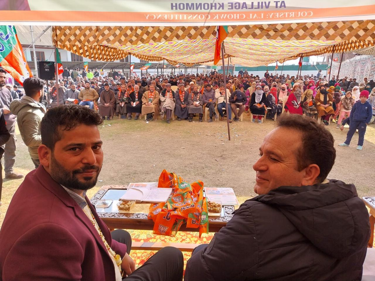 The BJP organised a mega party convention at Khonmoh area of Srinagar today, in which thousands of people including women, elderly, youth and children participated besides those who are affiliated with the party. The BJP workers renewed their pledge to strengthen the party at the grassroots level ahead of the upcoming Panchayat and Parliamentary polls in the UT.