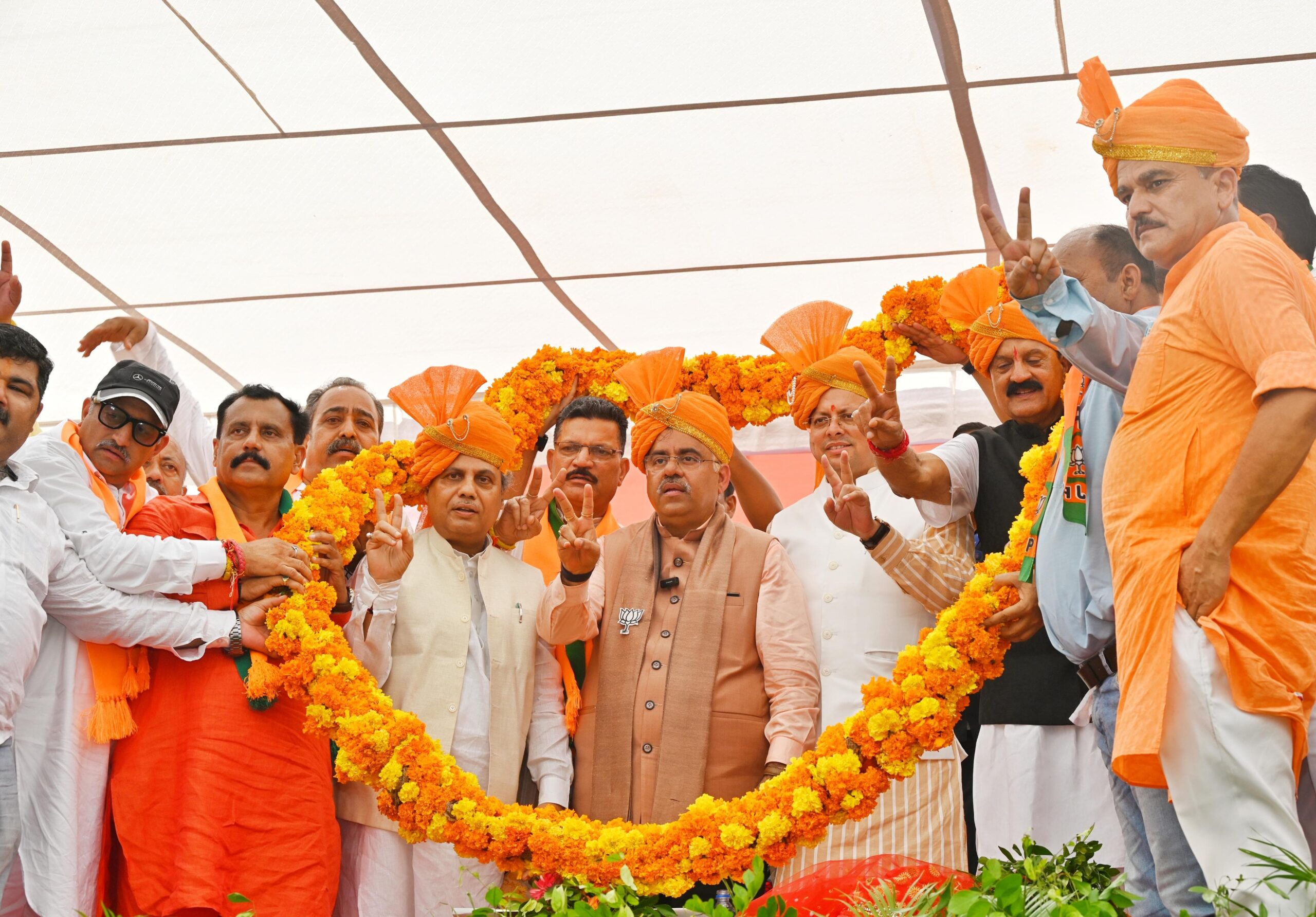 Samba: BJP national general secretary Tarun Chugh and Uttarakhand chief minister Pushkar Dhami ked a road show followed by a large public rally in Samba in which Chugh, recounted the conspiracies of the Sheikh Abdullah-led government during the Jana Sangh era. He explained how two constitutions and two symbols were imposed at the time, and how Jana Sangh’s founder, Syama Prasad Mookerjee, was arrested during Sheikh Abdullah’s regime.Chugh remarked, “The false narrative established by Sheikh Abdullah continues even today, with his descendants still demanding the reinstatement of Article 370.” He urged the audience to consider this election carefully, asking, “Should we continue supporting the ideals of Premnath Dogra, or fall for the conspiracy led by Sheikh Abdullah, which aims to keep J&K shackled by Articles 370 and 35(A)? Does J&K need to move forward from this?”He further criticized Farooq Abdullah’s push to reinstate Articles 370 and 35A, questioning the need for the return of two flags and suggesting that it would undermine the constitution introduced by Dr. B.R. Ambedkar. He said, “This election is not simply a contest agains the NC, Congress, and PDP. It is a battle between those who wish to bring back 370 and those supporting Narendra Modi’s development agenda for J&K.”Chugh concluded by urging the people of Samba to vote for the BJP and ensure the victory of their candidate, Surjit Singh Salathia.