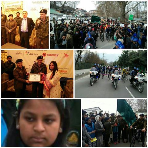 Around 350 children from various schools all across Srinagar participitated in the event. The huge cavalcade of Cyclists in an extremely disciplined formation of batches rode from Traffic Police office via Dalgate, Boulevard, Lalit, Gupkar, TRC and concluded back at the Traffic Police Office City Srinagar.