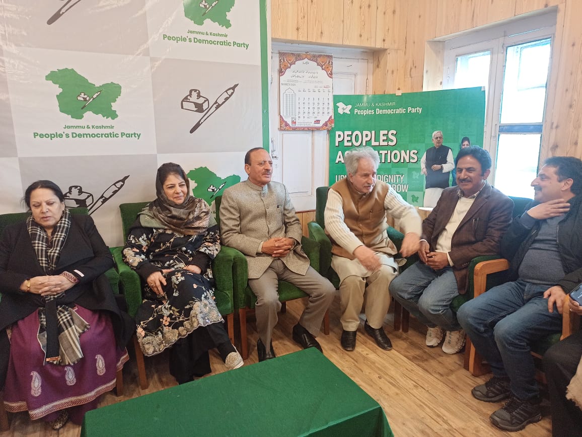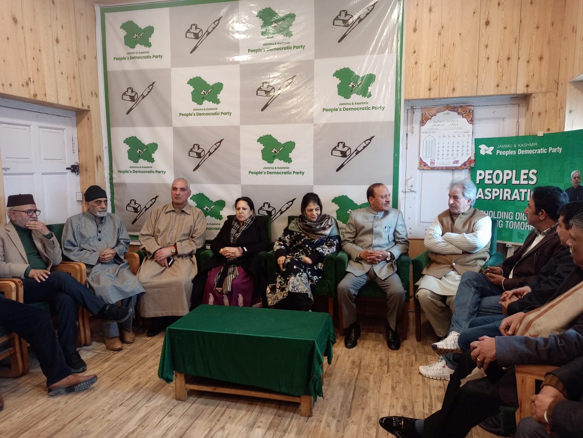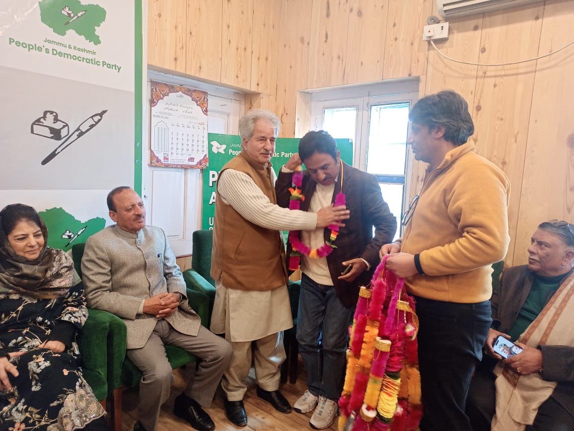Srinagar: In a significant development PDP got bost in South and North Kashmir when Ex MLA Shangus Annatnag Mansoor Hussain Suharwardy and MLC Yasir Reshi of Sumbal Sonawari district Bandipora rejoined PDP in presence of party President and former Chief Minister Ms Mehbooba Mufti in an impressive program organised at party headquarters Sringar in which galaxy of party senior leaders participate including Vice President Mohammad Sartaj Madni, General secretaries Adv Abdul Haq Khan and Mohammad Khursheed Aalam, Senior leaders and former ministers Abdul Rehman Veeri, Syed Nayeem Akhter Andrabi, Adv Gh Nabi Lone Hanjura, Ms Asia Naqash, Additional Spokesperson Zuhaib Yousuf Mir, Media Coordinator Bashir Ahmad Beigh, Arif Laigaroo, District Presidents Abdul Qayum Bhat Srinagar, Adv Sheikh Javed Anantnag, Syed Sajad Hussain Bandipora, Tahir Qadri, Imtiyaz Ah Reshi, Ali Mohammed Baba, Mushtaq Ahmad and others.