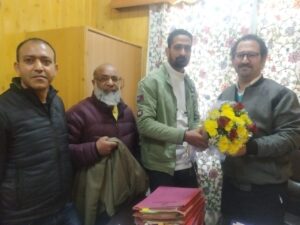 Srinagar: A delegation of senior leaders of the Jammu and Kashmir Handicrafts Employees Union headed by its President and General Secretary Employees Joint Consultative Committe(EJCC) Mr.Suhaib Munshi today welcomed Mirza Shahid Ali Beigh as the Deputy Director Handloom & Handicrafts, Kashmir in Srinagar.