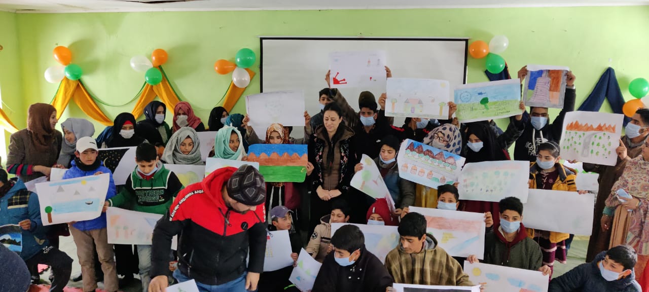 Srinagar: As a concrete step towards realising the vision of providing better platforms to the women and children of the area and in continuation to the various goodwill initiatives being carried out by Army in Sopore, WORKSHOPS ON ART AND WOMEN EMPOWERMENT were organised at Army Goodwill School, Mazbug, Shah-I-Hamdan Centre for Education and Watlab Youth Centre by Sopore and Paribal Rashtriya Rifles respectively in collaboration with *ROUBLE NAGI ART FOUNDATION.