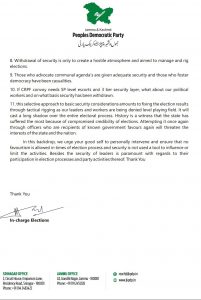 PDP writes to the Chief Electoral officer with reference to security withdrawal of leaders. “selective approach to basic security considerations amounts to fixing the election results through tactical rigging as our leaders and workers are being denied level playing field”.