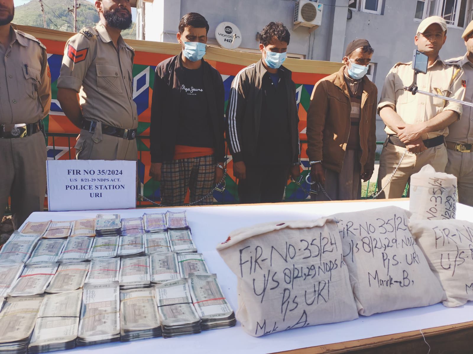 On receiving this information, Police Party accompanied by Magistrate and with assistance of Army, searched the spot and recovered the contraband substance and cash on disclosure of the accuseds. Further they also revealed that, one more person namely Fayaz Ahmad Hajam S/o Mohd Rafi Hajam R/o Danisyedan has managed to smuggle contraband from Pakistan, accordingly he was detained during questioning, he also disclosed that he has concealed some contraband, which was subsequently recovered by Police and Magistrate. Further, on disclosure of Fayaz, some cash was also recovered from his house. So far Police has recovered contraband weighing 7.800 Kgms (value Rs. 50 Crore approximately) and cash worth Rs. 12,63,500/- from this module which has links with Pakistan based handlers.