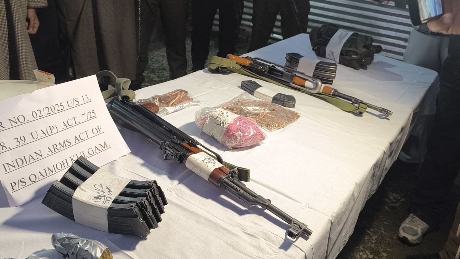 Total recovery as under mentioned was recovered from their possession, 02 AK- Series Rifles, 08 AK series Magazines, 217 AK rounds, 05 Hand Grenades, and 02 magazine pouchs.