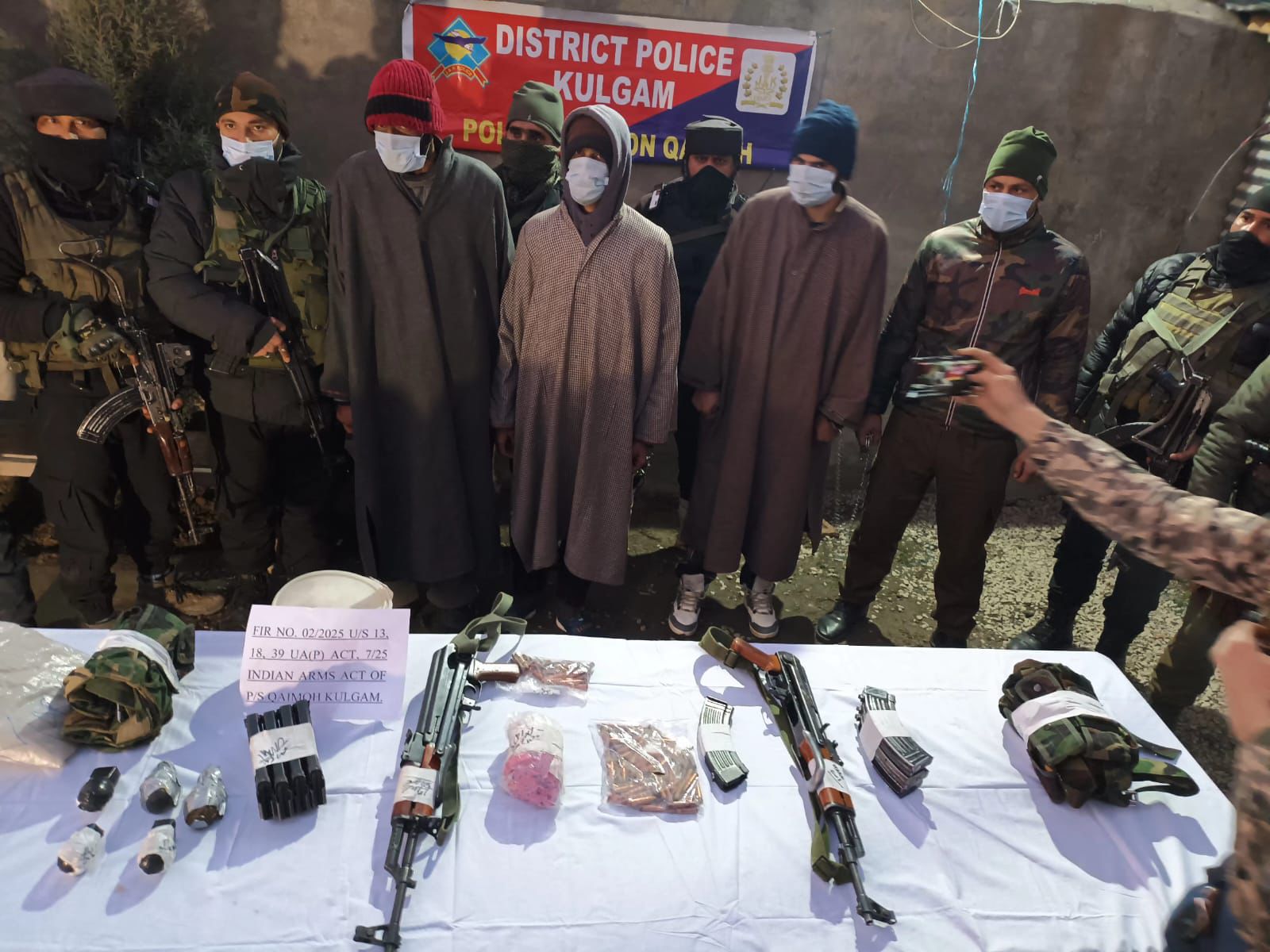 Srinagar: Police on Thursday claimed to have arrested three militant associates of Lashkar-e-Taiba outfit in South Kashmir’s Kulgam district.In a statement police said that during the investigation of case FIR Number 02/2025 U/S 13, 18 and 39 UAPA of police station Qaimoh, Kulgam Police along with Army (1RR, 1Para(SF)) and CRPF (18 BN),